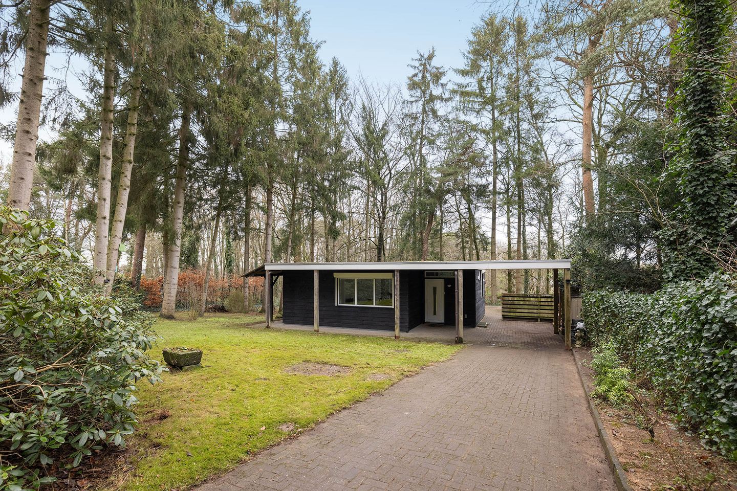 De bungalow ligt op een mooie locatie, omringd door bomen. Via de oprit, die ruimte biedt voor meerdere auto's, bereik je het perceel. Je hebt de mogelijkheid om je auto onder de carport overdekt te parkeren. De tuin rondom het huis is weelderig groen, met gras, bomen en struiken die perfect passen in de natuurlijke omgeving. Aan de voorzijde van het perceel staat een houten overkapping, ideaal voor het opbergen van tuingereedschap. Aan de achterzijde bevindt zich een deels overdekt terras, waar je dankzij de beschutte ligging volop van je privacy kunt genieten.