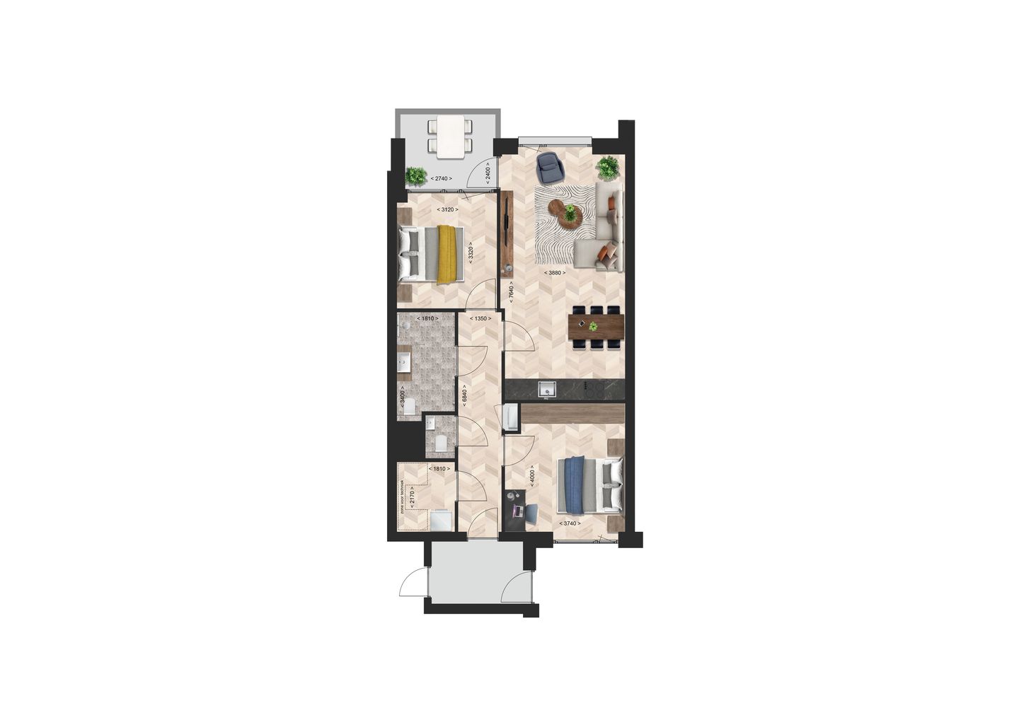 De appartementen hebben 2 of 3 slaapkamers en variëren in gebruiksoppervlakte van 68 tot 105 m2. De woonkamer met open keuken geeft toegang tot een heerlijk balkon of terras met uitzicht op de tuin of de groene omgeving. Op de begane grond is dat een terras en op de eerste en tweede verdieping een balkon. In het appartement heb je een ruime eigen berging en op de begane grond is er een algemene fietsenberging. Je auto parkeer je op je eigen parkeerplaats of één van de vrije plaatsen op het verlichte terrein rondom het gebouw.