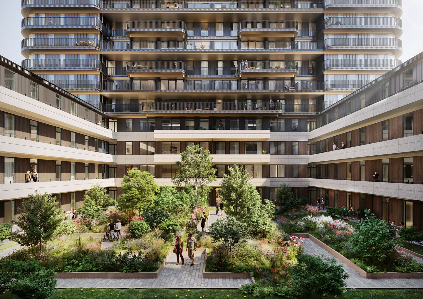 NEW FOR RENT - Berghaus Amsterdam - In February 2025, a remarkable project will be completed at Koningin Wilhelminaplein. In this prominent location in Amsterdam West, Berghaus, a multifunctional building with 288 rental apartments ranging from 40 to 99 m² in various price segments, will rise. The design, created by MVSA and HEYLIGERS architects, is characterized by its curved shapes and stylish materials. Large windows ensure plenty of light and unobstructed views. Each apartment has its own outdoor space, and within five minutes, you can cycle to Rembrandtpark or Vondelpark for a breath of fresh air. Living in Berghaus means choosing a modern, luxurious lifestyle in the city.