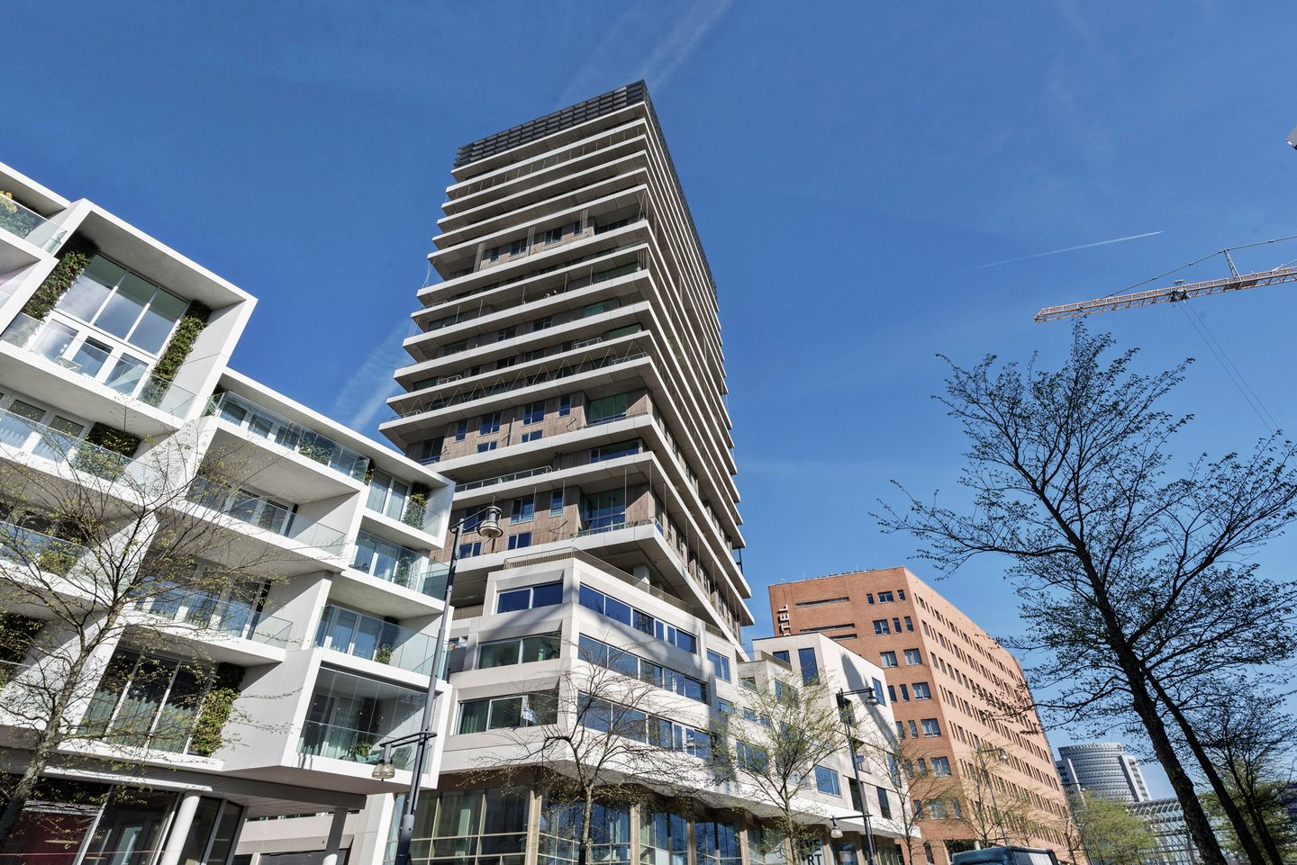 Very exclusive apartment of 132 m2 with a good size balcony of 7 m2 on the 17th floor of Vertical. The luxuriously finished apartment will be rented excluding furniture, including parking space and bicycle parking spaces. The house has a living room of approximately 65 m2 with windows on the corner and three bedrooms.