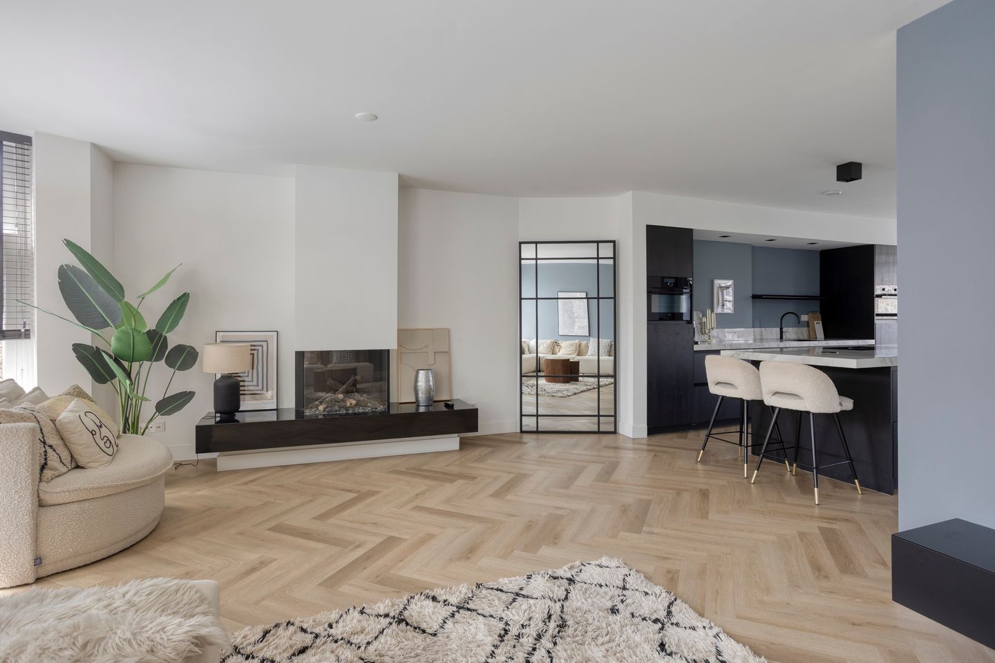 On the third floor, you enter a spacious, bright living room that extends from front to back. Large windows allow natural light to flow in throughout the day. The open kitchen forms the heart of the space: a central cooking island, modern appliances throughout, two ovens, a large freezer, a wine climate cabinet, and a Quooker. Altogether, it’s a wonderful place to cook, sit, work, or simply watch the day go by. At the rear you’ll find a balcony — perfect for a quiet morning outdoors or a fresh evening breeze. This floor also includes a separate toilet.