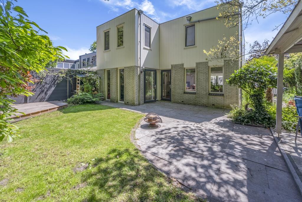 Behind the charming boundary fence, there is a spacious patio-style sun terrace with parking space for one car. The well-maintained “green” garden, developed over the years, immediately catches your eye.