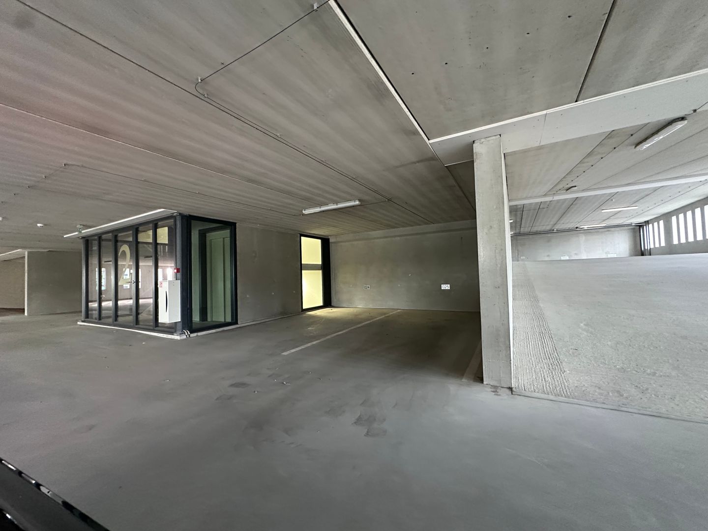 Parking space for one car in complex.