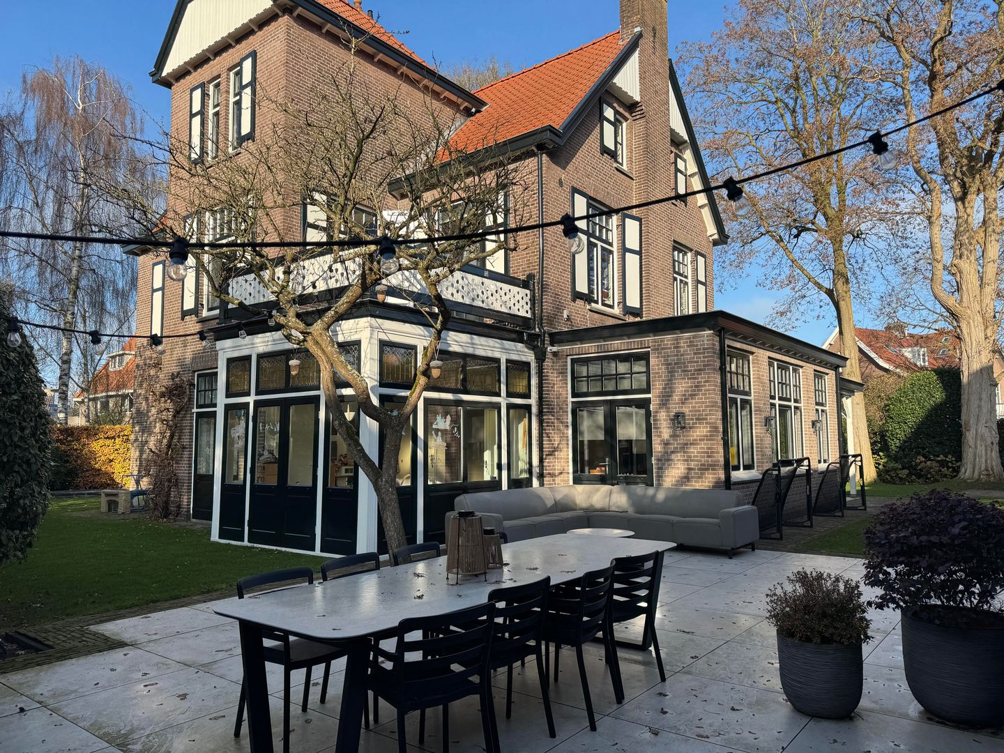 The house has been fully renovated in recent years and combines historic character with modern comfort. Thanks to its spacious layout and large windows, the home feels bright and airy throughout. The property is surrounded by a beautiful green garden with several terraces, offering sunny and shaded spots throughout the day. For families, the garden is a wonderful outdoor space with a trampoline, swing and sandbox.