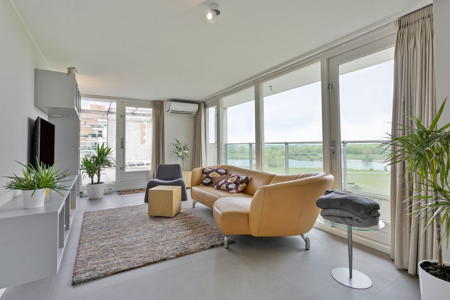 From the hall, one reaches the various rooms through a corridor. The living room features a PVC floor and is furnished in a modern style. From the living room, you can enjoy a beautiful view of the Maas.