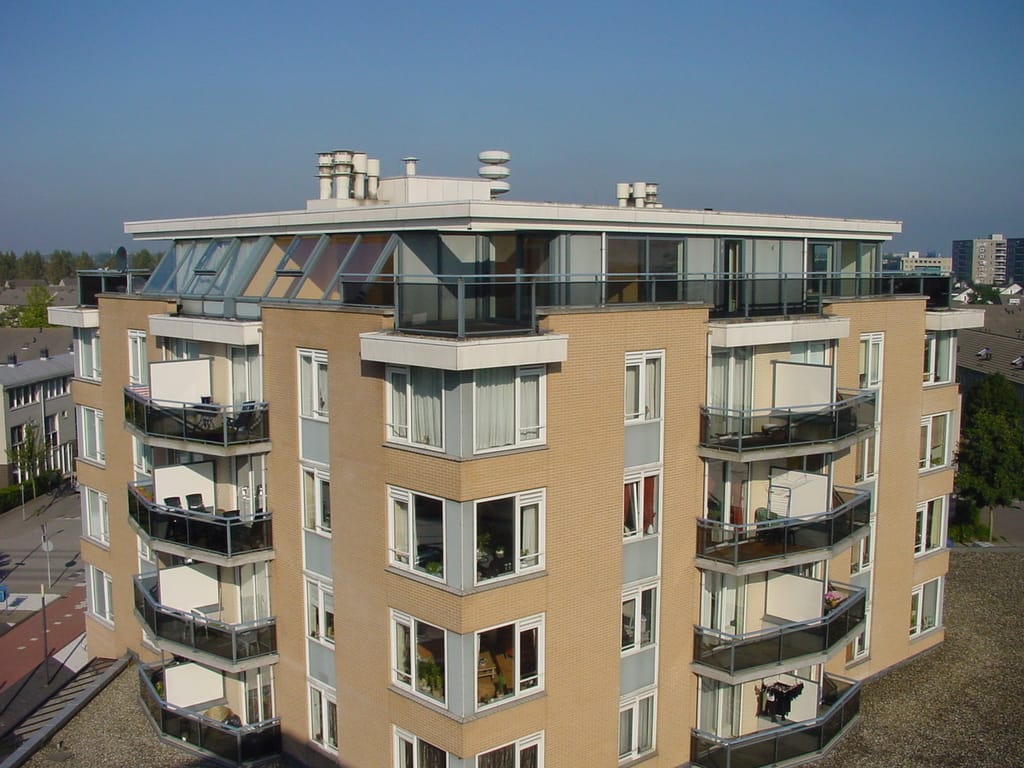 Indeling: hal, toiletruimte met fonteintje, royale woonkamer met schuifpui naar het riante dakterras, half open keuken, bijkeuken, vanuit keuken toegang tot het dakterras, twee slaapkamers voorzien van schuifpui naar voornoemd terras, badkamer met ligbad, separate douche en dubbele wastafel, inpandige berging voorzien van een aansluiting ten behoeve van een wasmachine, (fietsen)berging in de onderbouw.