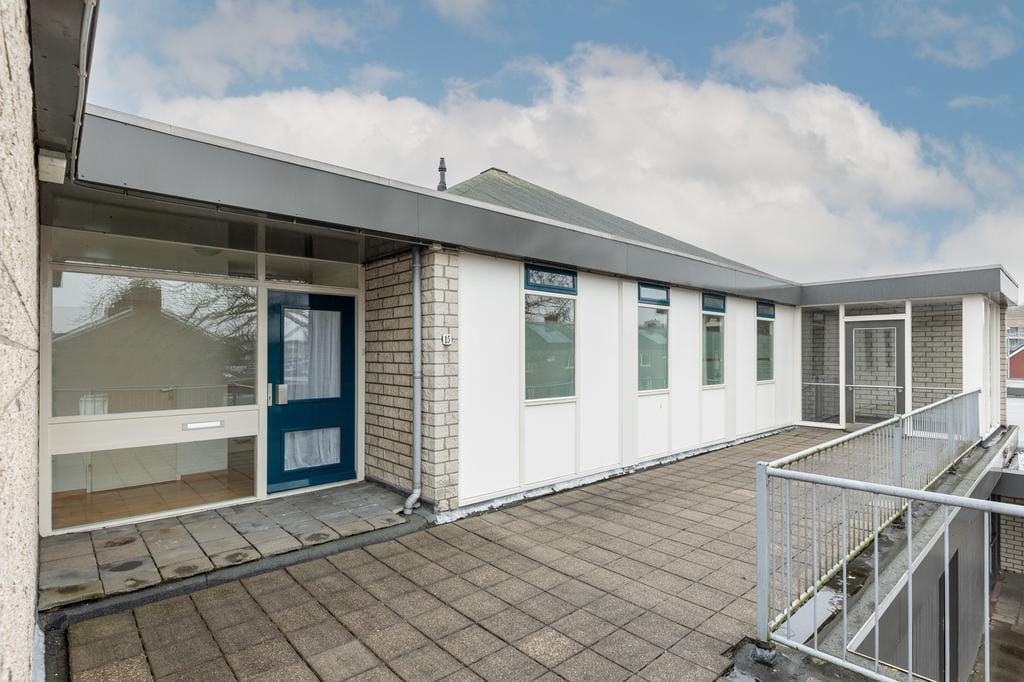 Aan de voorkant van de woning geeft de hal toegang tot de twee slaapkamers. Tussen deze kamers en de woonkamer ligt de badkamer. Deze laatste is voorzien van een bad, wastafel en aansluiting voor de wasmachine. Boven de woning is een ruime bergzolder terug te vinden. Aan bergruimte dus geen gebrek. Voor fietsen is er plek in de algemene berging op de begane grond.