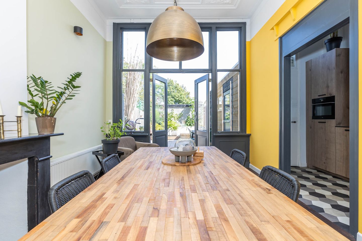 The living room is spacious and has plenty of natural daylight. The walls and ceiling are neatly finished. The seating area has a lovely lounge sofa and an extra large flat screen Smart TV. The dining table has a view of the garden, where you can enjoy your dinner. The kitchen is fully equipped; gas stove, oven/microwave, dishwasher, refrigerator and a coffee machine. The washing machine is located in the utility room. You can walk straight into the garden through the patio doors of the living room. The garden faces North-East and you can enter the back via the alley.