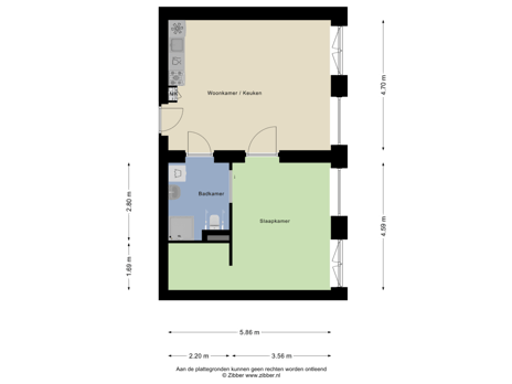 Alle studio’s verschillen van woonoppervlak en indeling. De plattegrond zoals afgebeeld, is een voorbeeld.