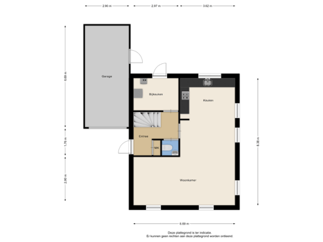 begane grond: entree via hal met meter- en trapkast, vaste trap, toilet met fonteintje. De hal heeft deuren naar bijkeuken, woonkamer en wc. L-vormige woonkamer met rondom zicht op de voor- zij- en achtertuin en open keuken met keukenblok in hoekopstelling. Bijkeuken met wasmachineaansluiting, ruimte voor een vriezer, droger en de nodige bergruimte en entree naar de besloten achtertuin. Oprit naar de garage voor 2 auto's. De ruime garage heeft plek voor een auto, fietsen, heeft de nodige bergruimte en is voorzien van elektra. Het garagedak is in 2017 vernieuwd.