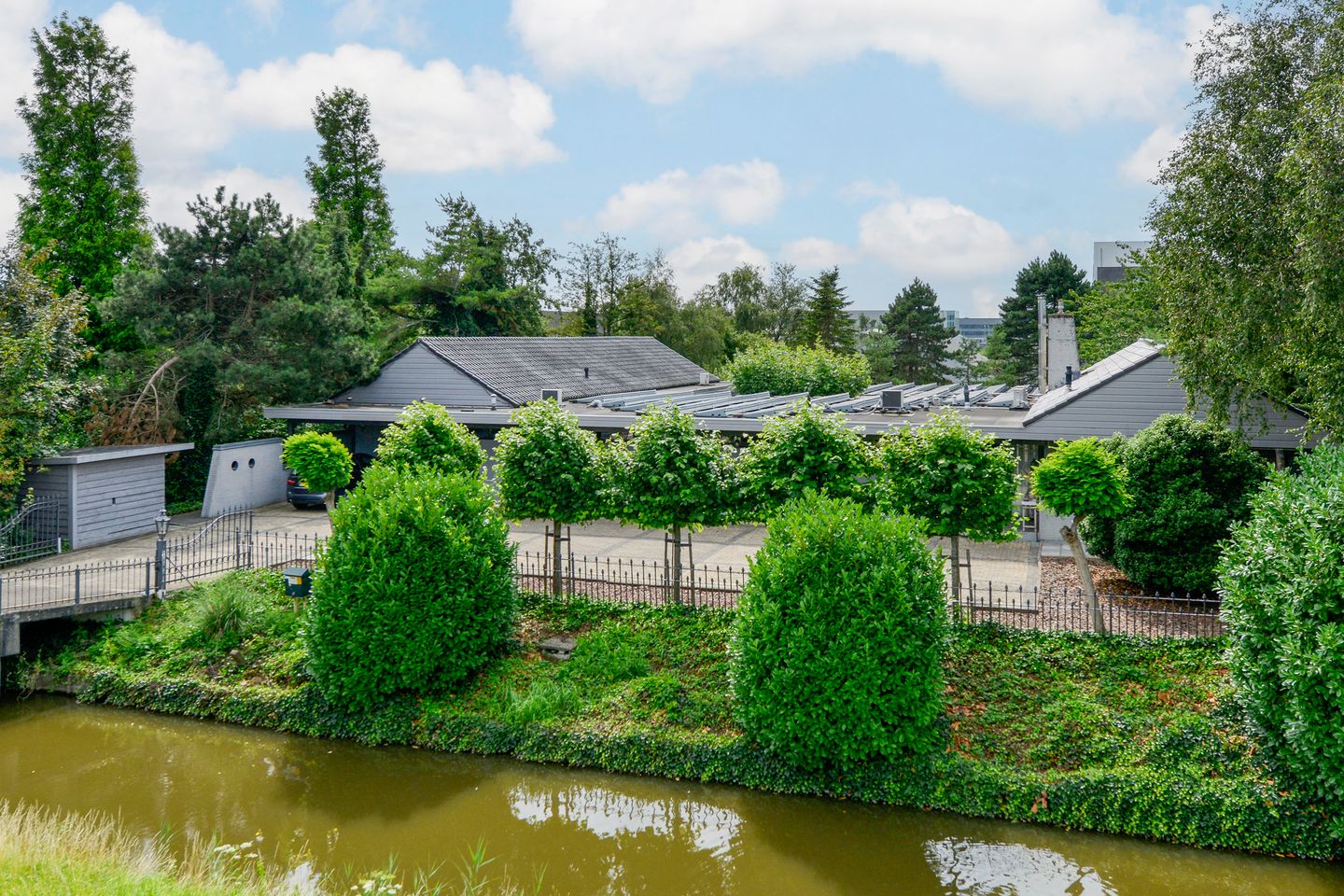 Het perceel voorziet in voldoende parkeergelegenheid en is bereikbaar via een brug met een elektrisch afsluitbaar hek.