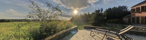 The outdoor space has been left largely untouched, in all its beauty. The estate of over six hectares around the house, on the other hand, has been beautifully landscaped and further cultivated. In addition to the gravel driveways, there is a suitable gray natural stone 'platines' around the house. The large terrace at the back of the house, as well as the guest terrace of the Bed & Breakfast, are constructed with this material.