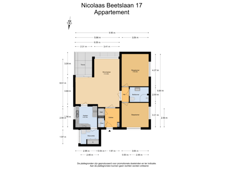 1e Verdieping: entree appartement, hal voorzien van garderobekast en modern zwevend toilet met fontein, lichte woonkamer met schuifpui naar zonnig terras (deels overdekt), moderne nette keuken voorzien van diverse inbouwapparatuur, bijkeuken met fontein, vaste kast en wasmachine-/droger aansluiting, 2 slaapkamers en een nette badkamer voorzien van douche, wastafelmeubel, zwevend toilet en vloerverwarming