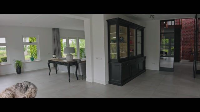 Begane grond: imposante entree met ruime hal, toilet en stalen taatsdeuren die toegang geven tot de sfeervolle woonkamer met drie-zijdige inbouwhaard en openslaande deuren naar twee terrassen. De halfopen woonkeuken is luxe afgewerkt met granieten blad en diverse inbouwapparatuur. Daarnaast een bijkeuken, inpandige berging en royale dubbele garage met elektrische overheaddeuren. De volledige begane grond is voorzien van vloerverwarming en een ruime kelder (op stahoogte) is bereikbaar via een vaste trap.