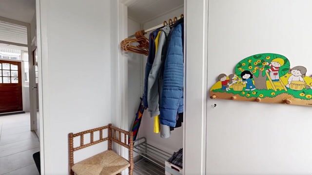 Entree: Je komt binnen in een ruim voorportaal met voldoende ruimte voor je garderobe, waarna je doorloopt naar de hal. Hier bevinden zich de trapkast, toiletruimte, de trapopgang naar de eerste verdieping en de toegang tot zowel de woonkamer als de keuken. De ruimte is afgewerkt met plavuizenvloer, behangwanden en een gestuukt plafond.