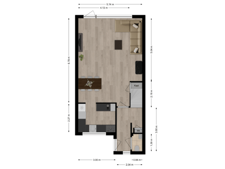 Maatvoering: Circa 5.14 x 2.58/2.47m