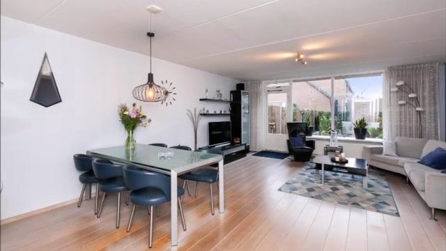 Welkom thuis! Wat een heerlijke woonkamer betreedt u vanuit de hal. Doordat deze uitgebouwd is, is hier aanzienlijk meer leefruimte ontstaan en heeft u alle plaats voor een gezellige zit- en eethoek te creëren. Via de achterdeur kunt u naar de tuin en onder de trap is een ruime inloopkast waar u allerlei spullen kunt opbergen.