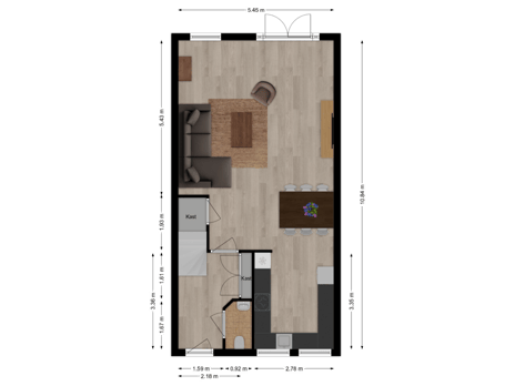 Maatvoering: Circa 5.45 x 3.24/2.12m
