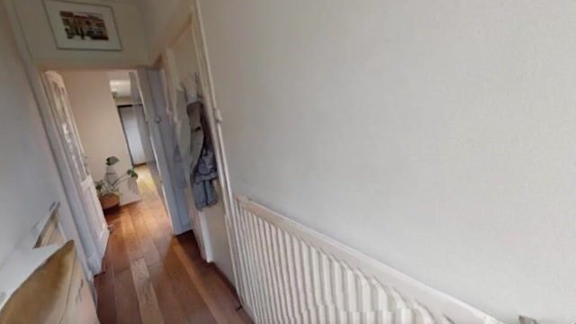 Entree: De lange en smalle hal vormt de toegang tot de woning en geeft verbinding met de woonkamer, meterkast en trap naar de eerste verdieping. De afwerking bestaat uit een houten vloer, structuurwanden en een gipsplafond.