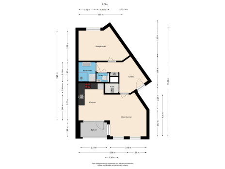 Via de centrale entree bereikt u het appartement dat geheel gelijkvloers is ingedeeld. De hal biedt toegang tot alle vertrekken. Het appartement heeft een prettig ingedeelde woonoppervlakte van 60 m². De lichte woonkamer (16 m²) biedt voldoende ruimte voor een zithoek en eettafel en sluit aan op het balkon van 4 m²—een fijne plek om buiten te zitten met uitzicht op het water en het aangrenzende park. De open ligging zorgt de hele dag door voor aangenaam licht.