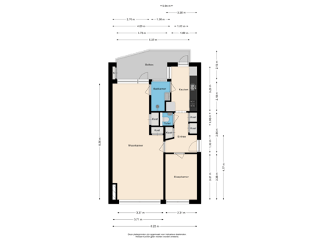 De keuken is uitgerust met een 4-pits gaskookplaat, vaatwasser en een losse koelkast/vriezer. Vanuit de keuken heb je toegang tot het zonnige balkon, voorzien van een kunststof kozijn met HR++-glas. De slaapkamer aan de voorzijde beschikt eveneens over een kunststof kozijn met HR++-glas. De badkamer is praktisch ingedeeld met een wastafel en douche.