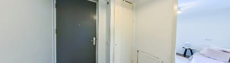 Met twee slaapkamers biedt dit appartement een fijn thuis voor jong en oud. De master bedroom is goed in te delen met een tweepersoonsbed en een meer dan 3 meter lange kastenwand. Aan de andere zijde van de hal is de tweede slaapkamer, met openslaande deuren naar de overdekte galerij.