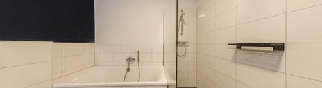 De badkamer is een stijlvolle én comfortabele ruimte. Je vindt hier zowel een heerlijk ligbad als een ruime inloopdouche. Zo kun je na een lange werkdag gegarandeerd helemaal tot rust komen. Daarnaast zijn er een dubbele wastafel met meubel, vrijhangend toilet en een designradiator.