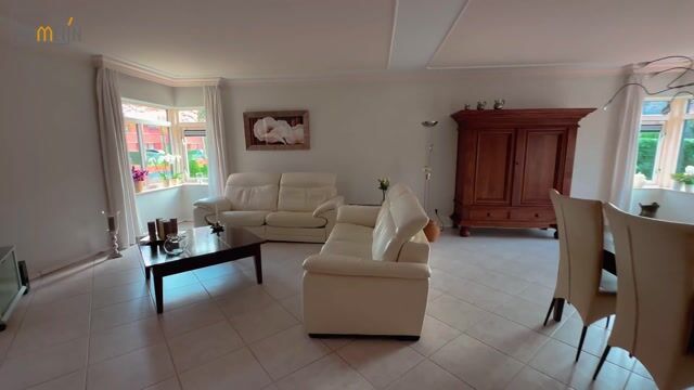 The garden is, without doubt, one of this property’s standout features. Beautifully landscaped with great care, it offers several sun terraces, lawns, mature borders and optimal privacy, creating a true oasis of calm. The generous side garden further enhances the sense of freedom around the home. With the Gardena irrigation system, the electric sunshade with renewed fabric (2023) and the established planting, the garden is also very low-maintenance.