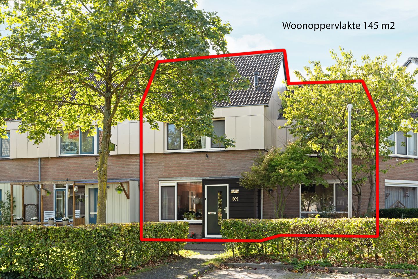 The home offers an impressive amount of space with a living area of approximately 145 m². The layout is playful yet practical, with plenty of possibilities.