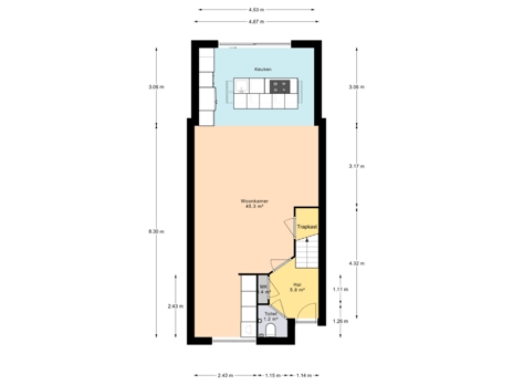 - 71 m² (14.04 metre deep and 5.06 metre wide)