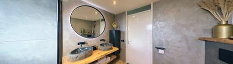 Indeling eerste verdieping: Op de eerste verdieping bevinden zich drie slaapkamers, waarvan één momenteel in gebruik is als kastenkamer. De badkamer (2022) straalt luxe uit met een inloopdouche, extra diep ligbad, tweede toilet, en een dubbele wastafel met twee kommen. De ruimte is hoogwaardig afgewerkt met inbouwkranen, grote 120x120 cm tegels en gestuukte wanden, wat een moderne, hotelwaardige uitstraling geeft.