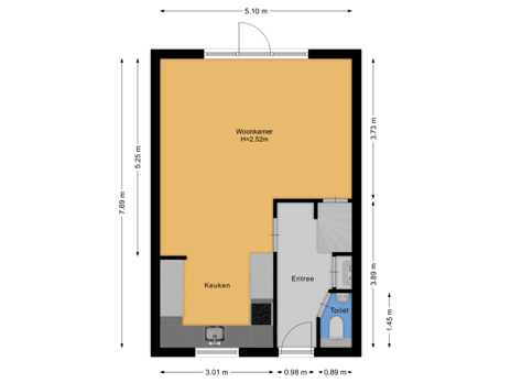 • Entree/hal met meterkast, toilet en trapopgang