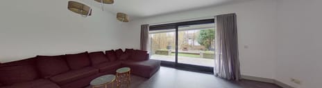 The spacious dining room is located on the garden side and offers a pleasant view of the greenery. The neat tiled floor with underfloor heating provides extra comfort here.