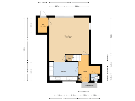 Bij binnenkomst valt direct op hoe verzorgd en uitnodigend deze woning is. Via de hal met toilet en toegang tot zowel de woonkamer als de keuken, loopt u door naar de ruime, aan de voorzijde gelegen keuken. Deze is prettig opgezet, met volop werkbladruimte en een fijne plek om te koken terwijl u uitkijkt over de rustige straat.