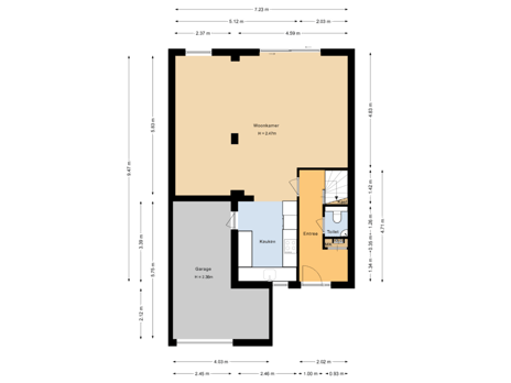 - de woonkamer is circa 40m² (7,23meter breed) dankzij een extra zijkamer en heeft een aluminium schuifpui en keuken aan voorzijde