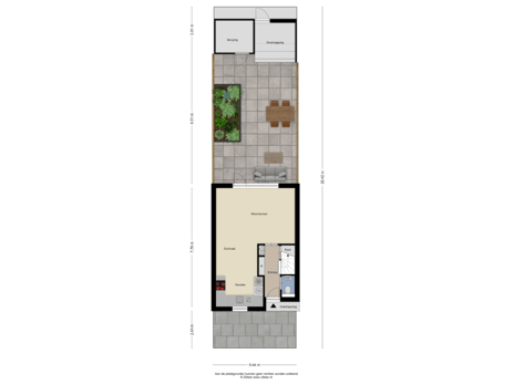 De achtertuin is goed onderhouden en biedt een combinatie van bestrating en groen. Door de ligging geniet u van volop zonuren. Er is voldoende plek voor een lounge set of een terras, terwijl achterin een praktische berging aanwezig is, ideaal voor fietsen en tuinspullen. Een overkapping met poort maakt de tuin compleet en zorgt voor extra gebruiksgemak.