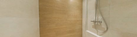 - Walk-in shower and washstand