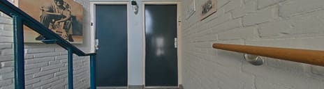 Via de centrale entree met brievenbussen betreedt u de portiek, die u slechts deelt met drie andere bewoners. De voordeur geeft toegang tot de entreehal van de woning.