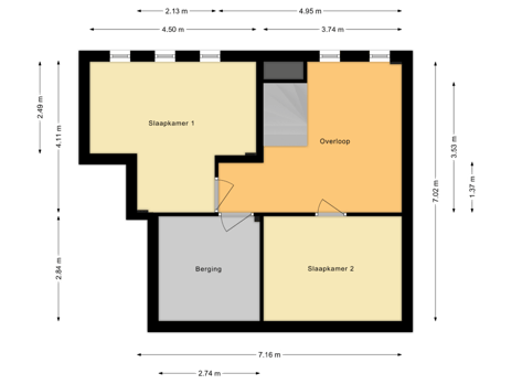 De beneden verdieping geeft toegang tot 2 slaapkamer en een kastenruimte.