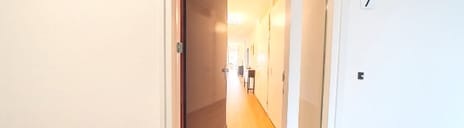 2e verdieping: eenmaal in het appartement ervaart u direct de ruimte. De hal vormt het centrale middelpunt en geeft toegang tot alle vertrekken. De woonkamer is royaal opgezet en profiteert optimaal van de speelse rondingen van het gebouw. Grote raampartijen zorgen voor een prettige lichtinval en een prachtig vrij uitzicht. Vanuit de woonkamer stapt u zo het balkon op, gelegen op het zuidoosten, een fijne plek om buiten te zitten en te genieten van de omgeving.