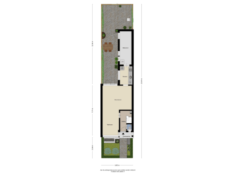 - 30 m² (12.36 metre deep and 2.42 metre wide)