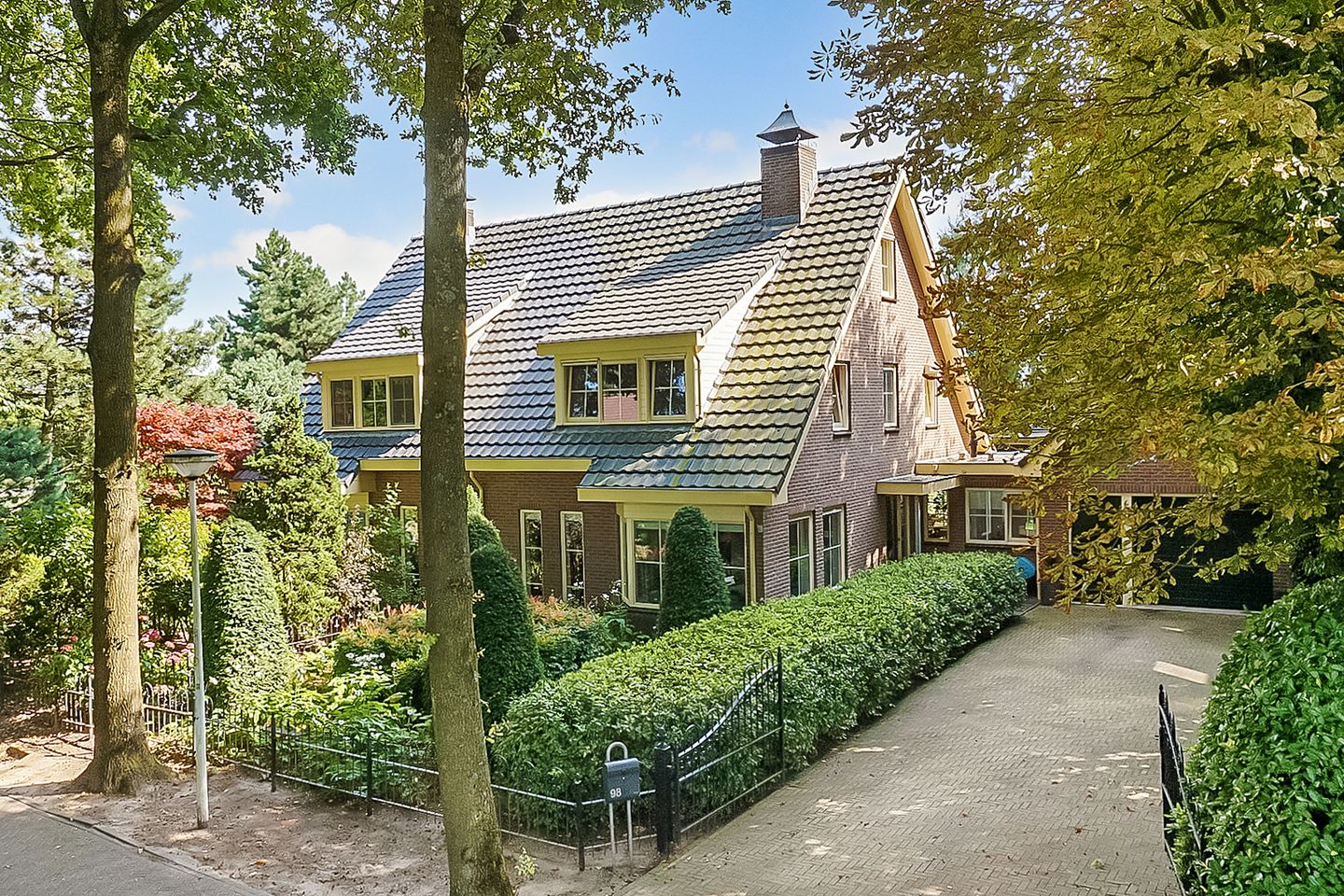 De voortuin wordt afgesloten met een ijzeren hek, en op de oprit is ruimte voor maar liefst drie auto’s.