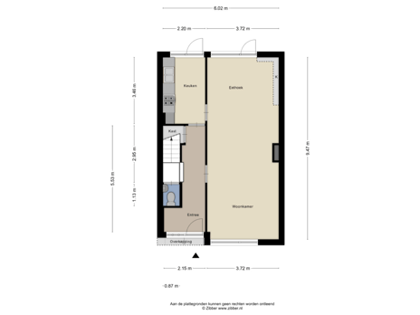 Via de voortuin bereikt u de entree met hal, gang, een separaat toilet, een trapkast, en de toegang naar de gezellige living. De sfeervolle woonkamer met laminaatvloer is door de grote raampartijen heerlijk licht en ruim en biedt vrij uitzicht. De kamer is voorzien van ingebouwde open kasten van hardhout. De eenvoudige keuken biedt meer dan voldoende opbergruimte in kasten en lades. Vanuit de keuken bereikt u de achtertuin, waar tevens een stenen berging aanwezig is. Hoewel de tuin op het noorden ligt, zorgt de ligging ervoor dat u overdag toch kunt genieten van voldoende zonlicht.
