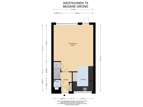 - 71 m² (12.48 metre deep and 5.72 metre wide)