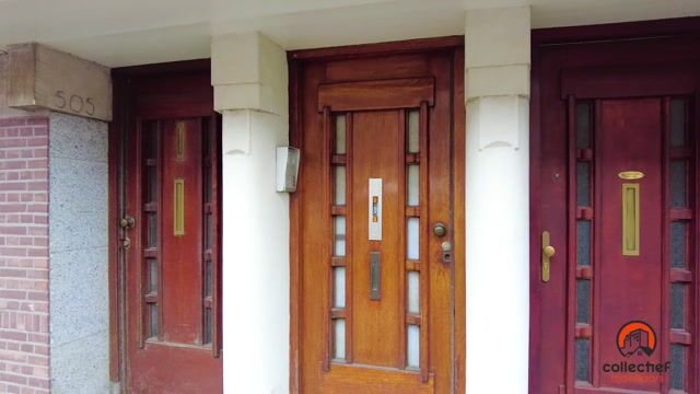 Via the private staircase on the second floor—beautifully illuminated by a glass roof—you reach the apartment. On the third floor, you enter the hallway, where the warm appearance of the wooden flooring immediately stands out. The bright living room at the front features four large windows, partly with stained glass, creating an ????????ic flow of natural light. At the rear, there is a second room currently used as a bedroom, but also perfectly suitable as a dining room. The characteristic en-suite separation with sliding doors and stained glass windows emphasizes the authentic character of the home.