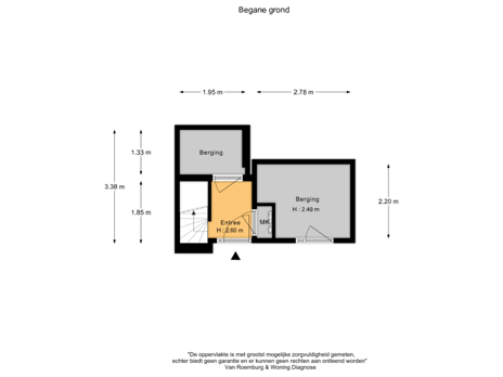 This floor has two bedrooms, the rear of which is particularly spacious at approximately 25 m².