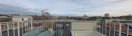 Een van de meest bijzondere kenmerken van het appartement is het privé dakterras van circa 17 m², exclusief bereikbaar vanuit het appartement via een vaste trap. Gelegen boven de omliggende daken biedt het een intieme buitenruimte met vrij uitzicht — ideaal voor een kop koffie in de ochtend, een borrel bij zonsondergang of ontspannen avonden met vrienden.