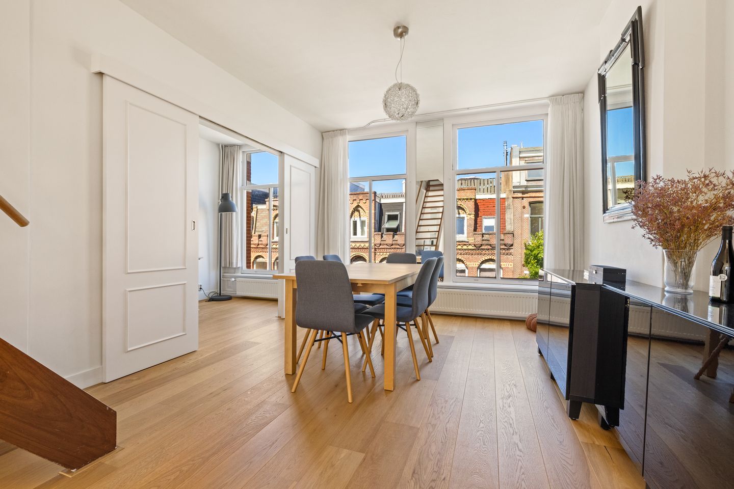 Bright and spacious charming duplex apartment, spread over the third and partly fourth floors, featuring a sunny roof terrace and situated on private land. This 3-room apartment is part of a small, active homeowners’ association (VvE) of 4 members, with a healthy cash reserve and a comprehensive long-term maintenance plan (MJOP). The location in one of the most beautiful streets of the popular Helmersbuurt is ideal: just around the corner from the vibrant Jordaan, Vondelpark, and Leidseplein, with everything Amsterdam has to offer within easy reach. In short, a unique and stylish duplex with exceptional character in a prime location!