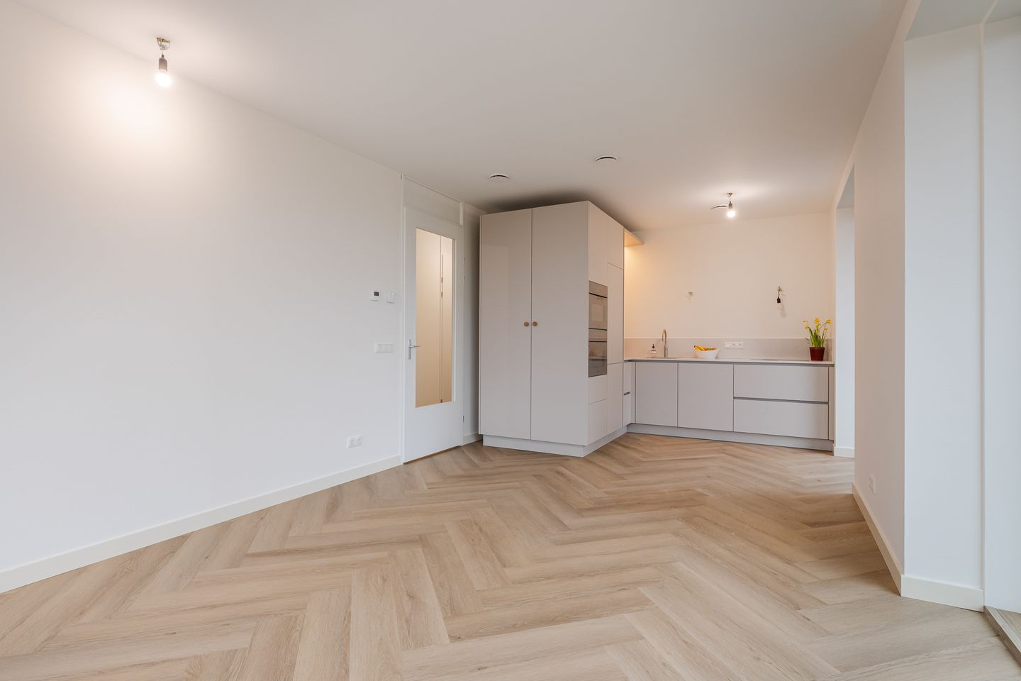 Het gehele appartement is voorzien een moderne PVC visgraatvloer, vloerverwarming en vloerverkoeling. Alle wanden zijn afgewerkt met vliesbehang en geschilderd in een lichte kleur.