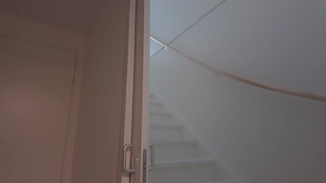 Bijzonder aan dit appartement is dat je binnenkomt op de verdieping erboven. Daar is een hal met een ruime berging en vervolgens neem je de trap die uitkomt in de grote woonkamer. Als je de trap af loopt, heb je al snel zicht op de omgeving want de ramen lopen bijna rondom van vloer tot plafond.